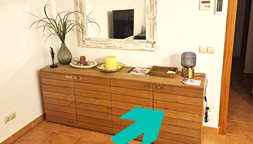 Si us agrada el ping-pong, trobareu dos conjunts de raquetes en l’armari de la televisió. Les taules per jugar les trobareu a dos minuts de casa. Aquí teniu la seva localització.